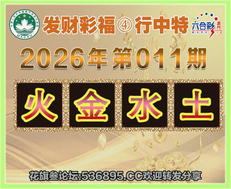 011期: 发财彩福 🥓④行中特🥓【火..水.土】开:金11