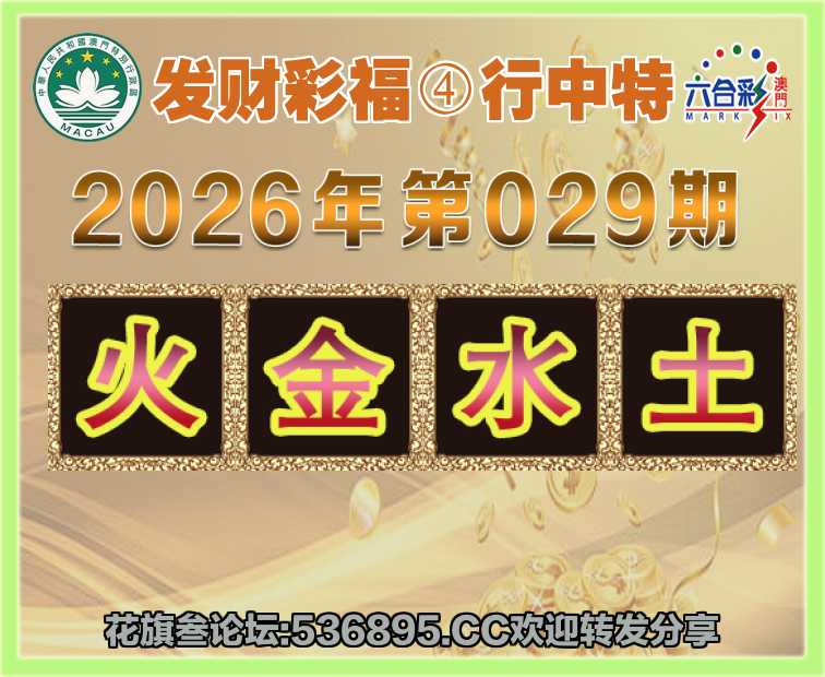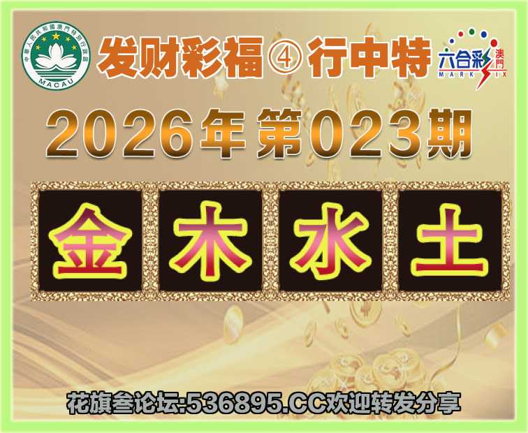 023期: 发财彩福 🥓④行中特🥓【金.木.水.土】开:火47